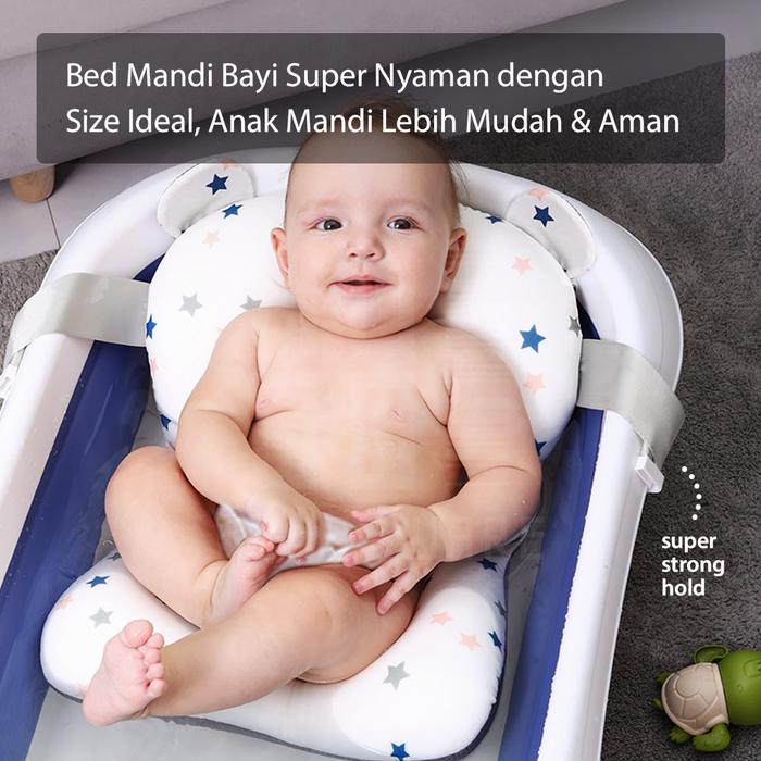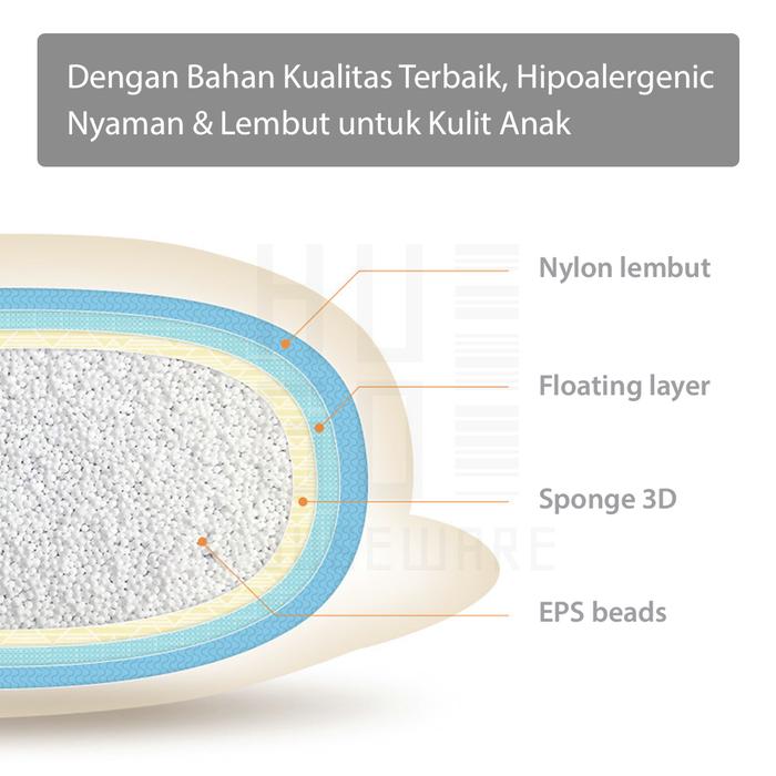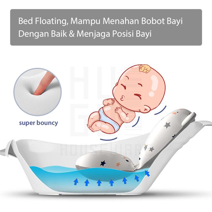 - Foam Busa Partikel: Bahan busa berkualitas tinggi yang ringan, tahan air, dan nyaman digunakan sebagai alas mandi bayi.