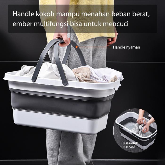 | Dapat digunakan sebagai ember pel, wadah air, tempat cuci baju, hingga wadah untuk aktivitas outdoor. | |