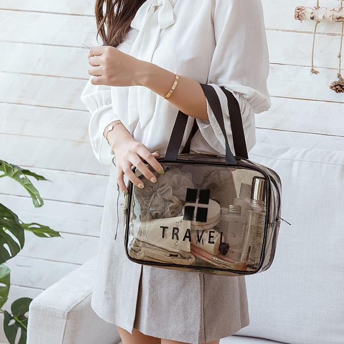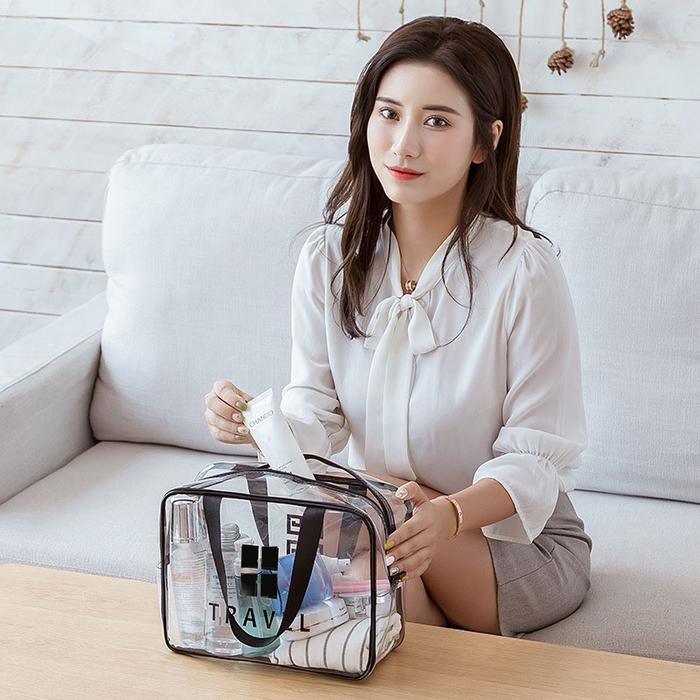 | Desain Transparan & Minimalis | Memudahkan Anda mencari barang secara cepat tanpa harus membuka tas. Desainnya elegan dan modern. |