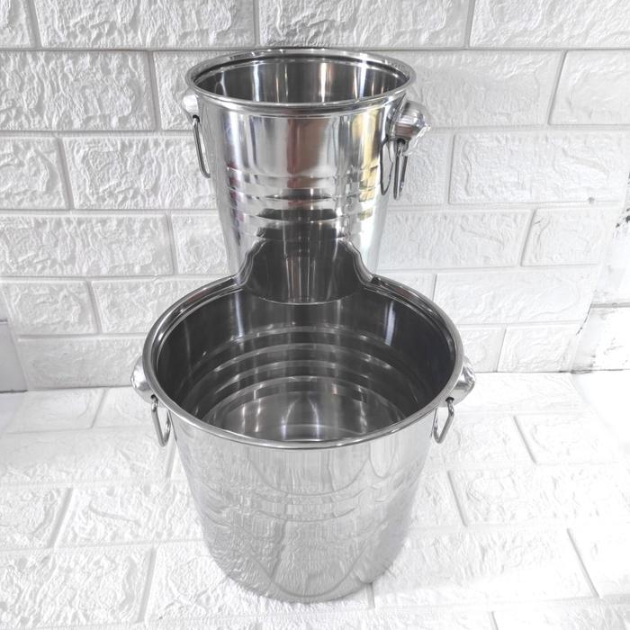 - Saringan Dalam: Sebuah alat berbentuk keranjang (biasanya dari stainless steel juga) yang ditempatkan di dalam ice bucket. Fungsinya adalah untuk menyaring air lelehan dari es batu yang mencair, sehingga botol minuman tetap berada dalam kondisi kering dan tidak terendam air.