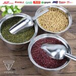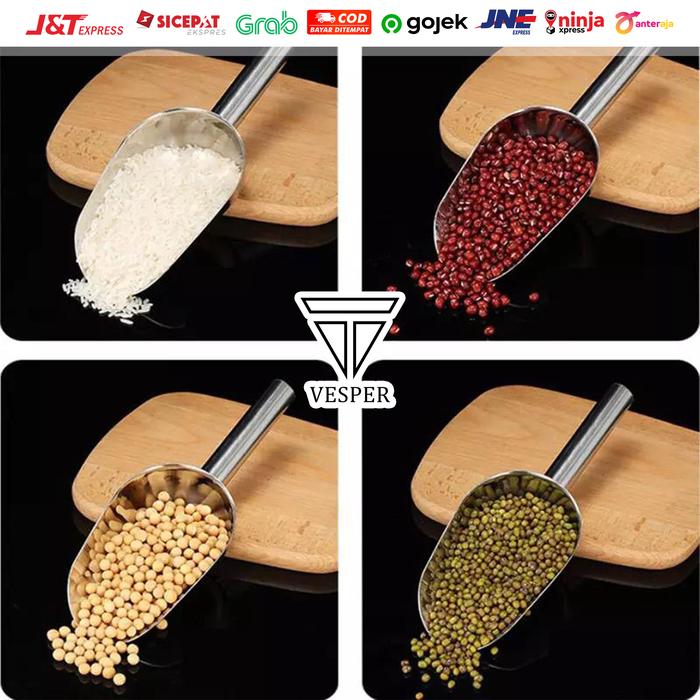 | Fungsi Serbaguna | Ideal untuk mengambil es batu, beras, kedelai, biji kopi, popcorn, tepung, permen, hingga pasir kucing dan kebutuhan rumah tangga lainnya. |