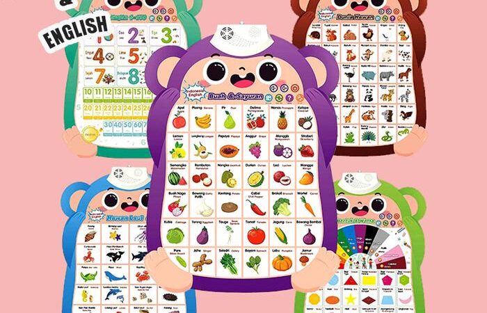 - Visual Menstimulasi – Warna cerah dan ilustrasi hidup merangsang minat belajar anak (contoh: huruf alfabet dengan gambar hewan).