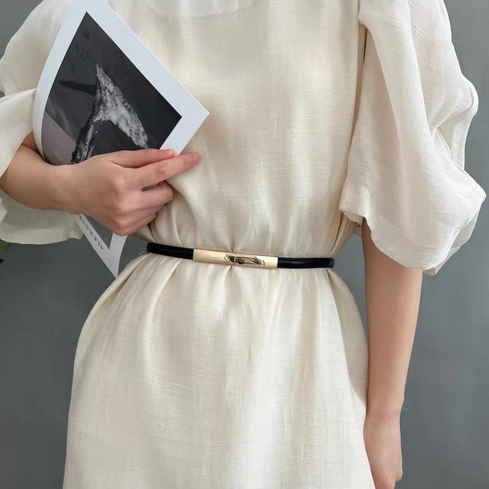Desain gesper persegi dari logam memberikan kesan klasik dan timeless yang mudah dipadukan dengan berbagai outfit. Baik itu jeans casual, celana suit formal, gaun, maupun rok, sabuk ini langsung menambah level kerapian dan kesan trendy. Jadikan ini aksesori utama untuk memperkaya gaya harian Anda di semua musim.
