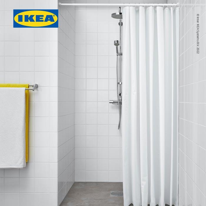 Transformasi kamar mandi Anda dengan kesan bersih dan segar menggunakan tirai shower Bjärsen dari IKEA. Desain putih klasik ini cocok untuk berbagai konsep dekorasi, memberikan kesan lapang dan higienis. Padukan dengan handuk LUDDVIAL untuk tampilan yang harmonis.