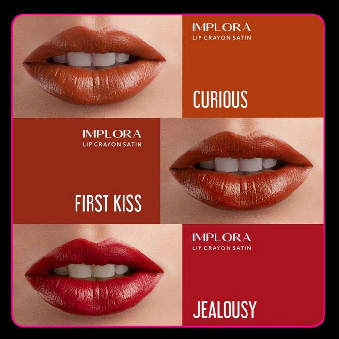Wujudkan penampilan bibir yang memukau dengan Implora Lip Crayon Satin. Dirancang dengan formula khusus yang diperkaya Omega Complex (3, 6, 9) dan Shea Butter untuk memberi nutrisi intens dan menjaga kelembaban alami bibir sepanjang hari. Hasilnya adalah warna yang pigmented dengan finish satin creamy yang elegan, tidak mudah luntur, dan terasa nyaman tanpa memberatkan.
