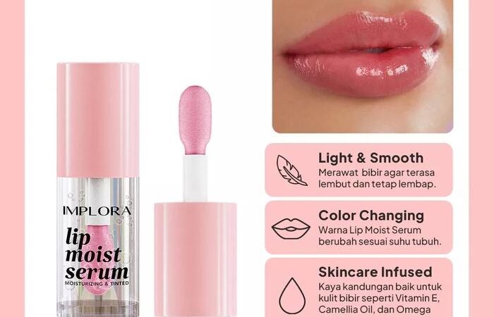 | Implora Lip Moist Serum | Camellia Oil, Vitamin E, Omega 3,6,9 | Menghidrasi, menghaluskan bibir kering, memberikan warna alami, meningkatkan kolagen, mengurangi penuaan | Sebagai primer sebelum lipstik |