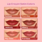 | Implora Lip Crayon Satin | Mengandung Omega 3,6,9 & Vitamin C. Tekstur creamy/satin yang melembapkan. Ujung crayon yang presisi untuk aplikasi mudah. | 01 Curious, 02 First Kiss, 03 Jealousy, 04 Misery, 05 Play Date, 06 Promises |