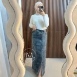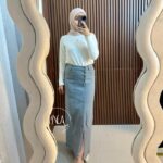 - Semi A-Line: Potongan rok yang sedikit melebar ke bawah, tidak terlalu lebar seperti rok A-line pada umumnya, sehingga memberikan kesan yang lebih ramping dan modern.