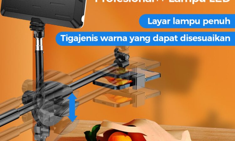 - Lampu + Tripod 2.1m: 1x Lampu LED, 4x Filter Warna, 1x Tripod 2.1m.