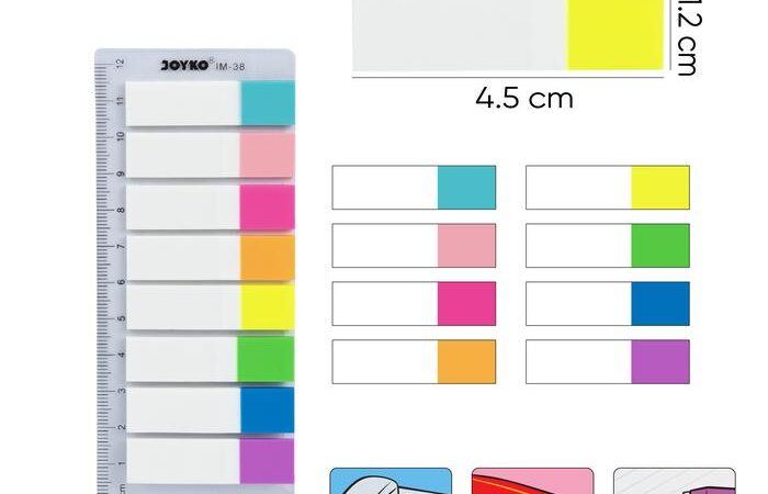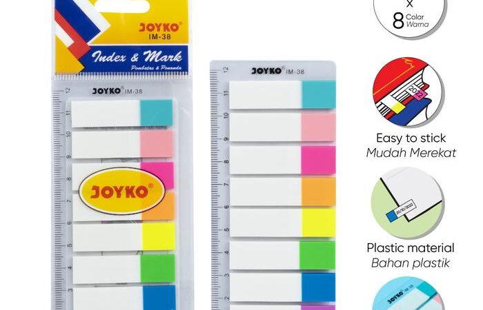 Tingkatkan efisiensi belajar dan kerja Anda dengan Index & Mark Penanda Pembatas Joyko IM-38. Terbuat dari bahan plastik berkualitas tinggi, penanda ini dirancang untuk memberikan performa unggul dan daya tahan lama.