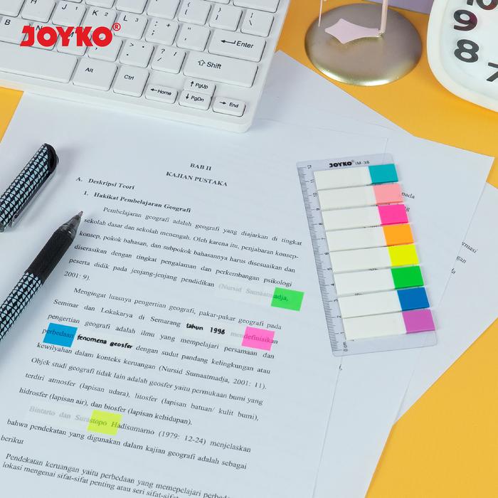 Tingkatkan efisiensi belajar dan kerja Anda dengan Index & Mark Penanda Pembatas Joyko IM-38. Terbuat dari bahan plastik berkualitas tinggi, penanda ini dirancang untuk memberikan performa unggul dan daya tahan lama.