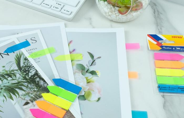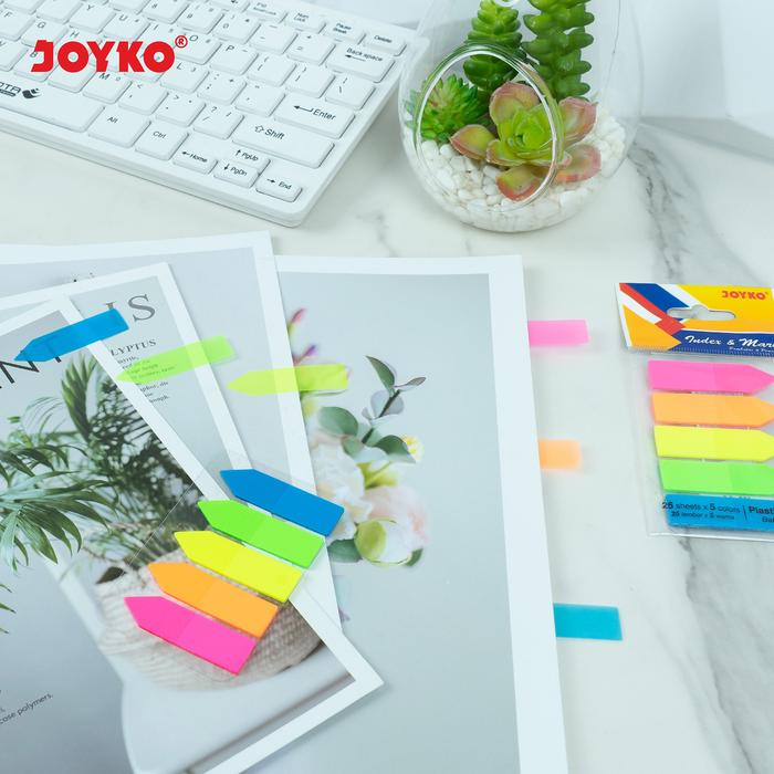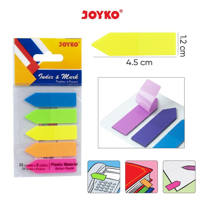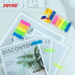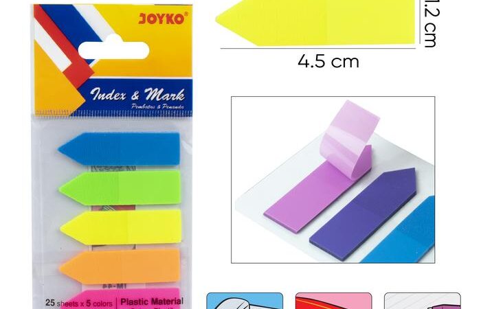 - Index Mark / Penanda Pembatas: Sebuah alat stationery berbentuk lembaran kecil dengan perekat di salah satu ujungnya. Fungsinya untuk menandai halaman atau bagian tertentu dalam buku, dokumen, atau file dengan mudah agar dapat ditemukan kembali dengan cepat.