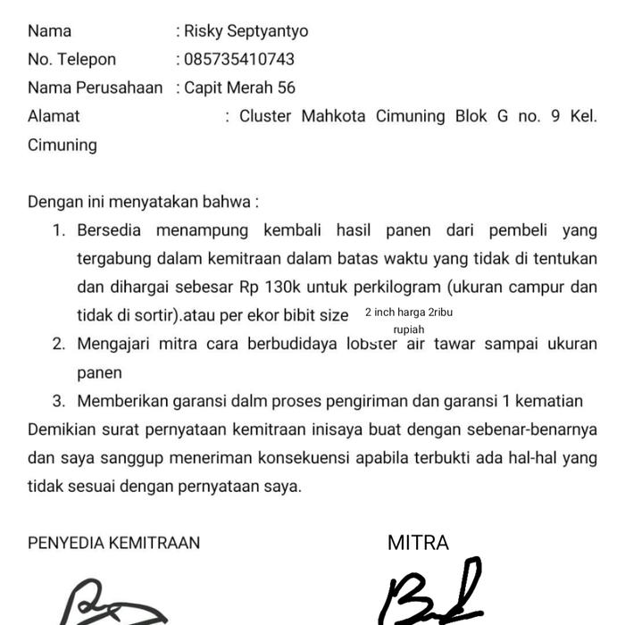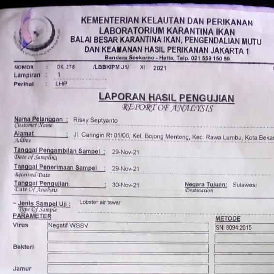 Harga per ekor untuk indukan lobster air tawar bertelur kualitas ekspor Super Grade A++. Harga dapat berubah sewaktu-waktu.