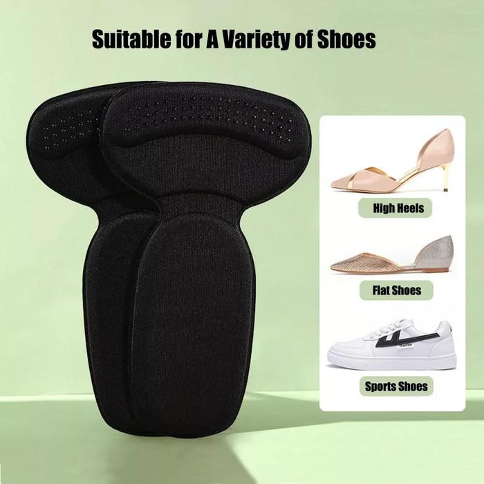 | Insole Tumit T-Shape | 1 pasang (Kiri & Kanan) | Hitam, Krem | • Bahan empuk premium • Bagian tumit dilapisi anti-slip • Menggunakan lem merek 3M untuk daya rekat kuat • Mengatasi sepatu longgar agar terasa lebih pas |