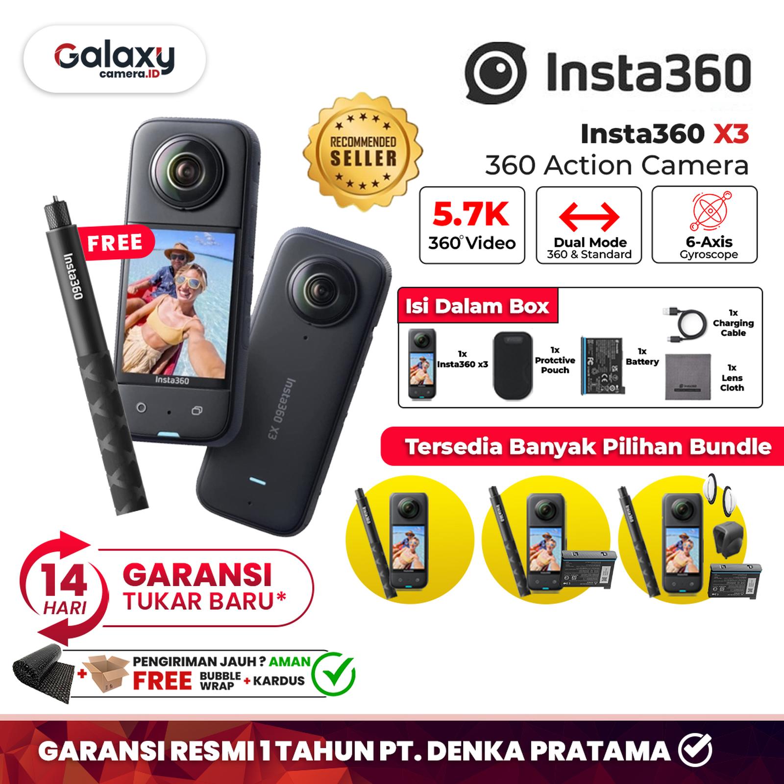 Setiap pembelian kamera mendapatkan garansi resmi 1 tahun dan gratis Invisible Selfie Stick. Pilih varian paket yang sesuai dengan kebutuhan Anda untuk pengalaman yang lebih lengkap.
