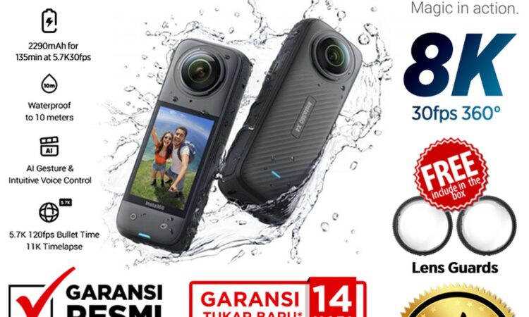 Rekam petualangan Anda dalam detail spektakuler dengan resolusi 8K 30fps dan 5.7K 60fps. Insta360 X4 menghadirkan kualitas sinematik 360° dengan stabilisasi FlowState yang memukau, memastikan setiap momen tetap mulus bahkan dalam kondisi bergerak. Fitur Horizon Lock menjaga frame tetap stabil, sementara Bullet Time 5.7K 120fps menciptakan efek slow-motion yang dramatis. Tahan air hingga 10 meter, ideal untuk olahraga air dan diving.
