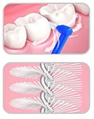 - Interdental Brush: Alat pembersih gigi berbentuk sikat kecil yang digunakan khusus untuk membersihkan celah atau ruang antar gigi (interdental space).