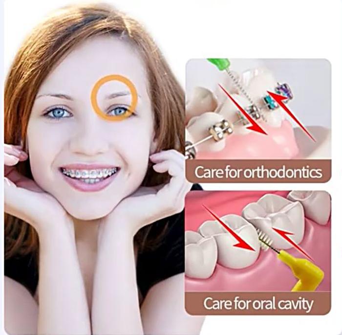 - Interdental Brush: Sikat kecil khusus yang dirancang untuk membersihkan celah atau sela-sela di antara gigi dan di sekitar alat orthodontik seperti behel.
