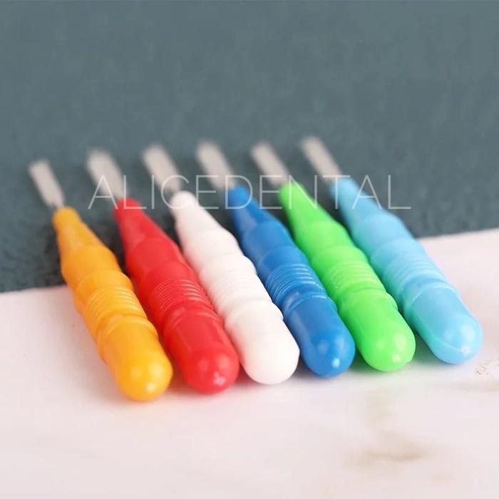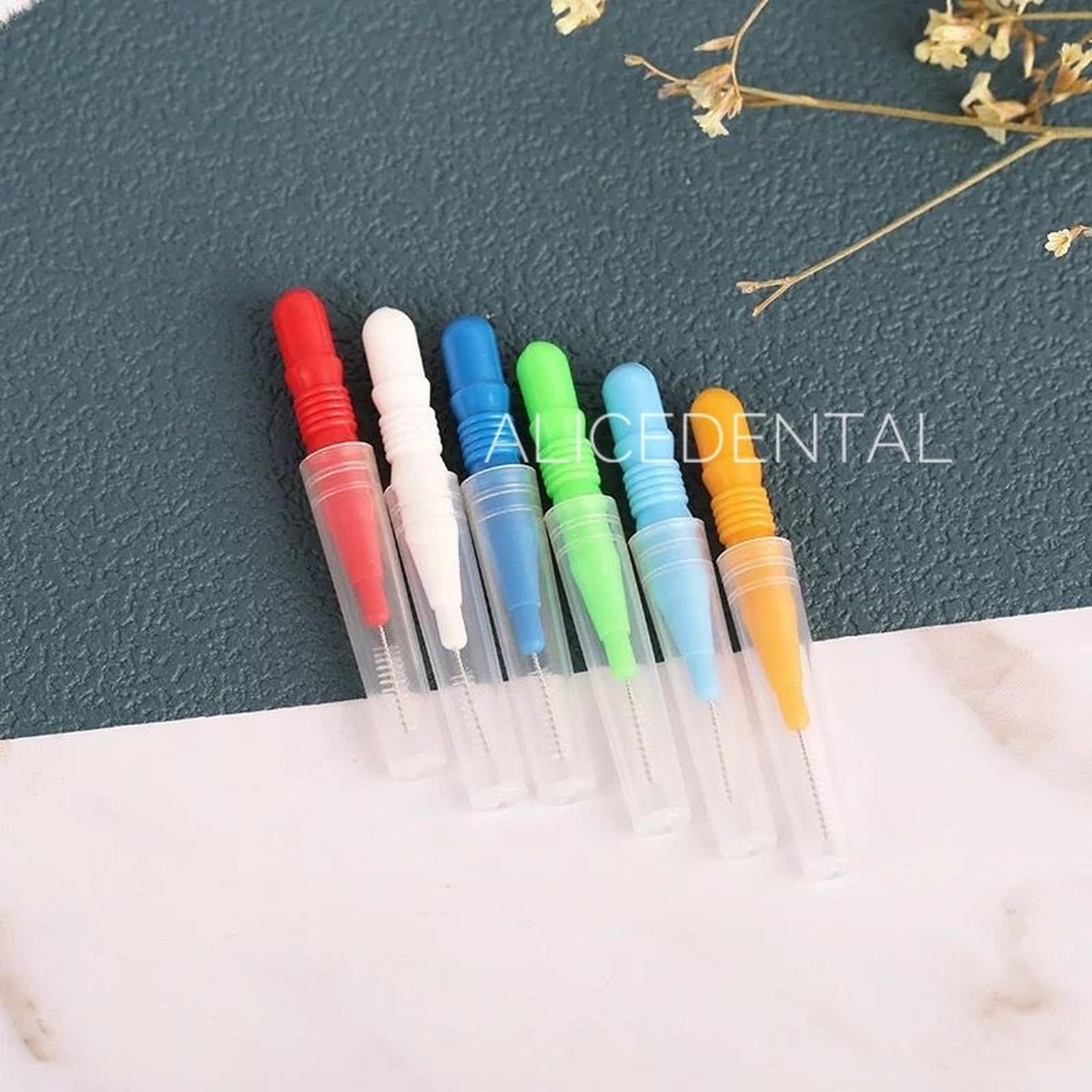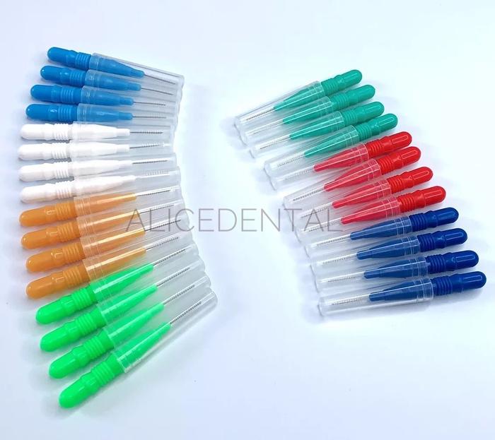 - Interdental Brush: Alat pembersih sela gigi berbentuk sikat kecil yang menyerupai pipa pembersih. Digunakan untuk menghilangkan plak dan sisa makanan di antara gigi dan di sekitar kawat ortodontik (behel) yang tidak dapat dijangkau sikat gigi biasa.
