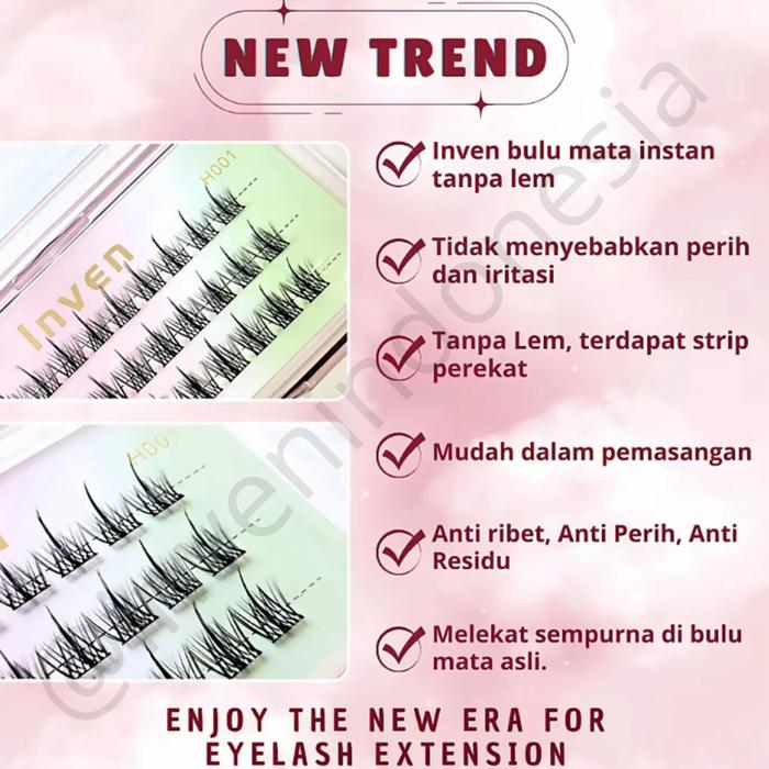 Tampil percaya diri dengan bulu mata palsu premium dari INVEN H001 yang memberikan kesan natural ala Korea. Dirancang khusus tanpa perlu lem, sangat praktis dan mudah diaplikasikan bahkan untuk pemula. Dilengkapi dengan pinset gratis untuk memudahkan pemasangan.