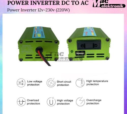 Hadir untuk memenuhi semua kebutuhan listrik portabel Anda, inverter ini mengubah daya DC 12V dari aki mobil atau baterai menjadi daya AC 220V yang stabil dan aman. Dengan daya 220 Watt, inverter ini cocok untuk menjalankan berbagai perangkat elektronik selama perjalanan, di lokasi kerja, atau sebagai cadangan daya darurat di rumah.