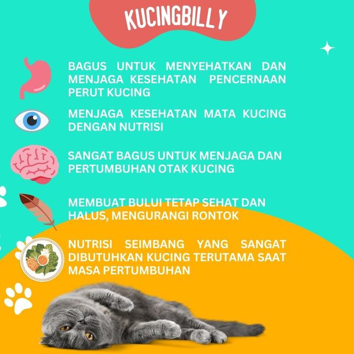 - Nutrisi Lengkap: Kaya akan vitamin, asam amino, dan mineral untuk mendukung pertumbuhan bulu yang sehat, mengurangi shedding (rontok bulu), dan meningkatkan daya tahan tubuh.