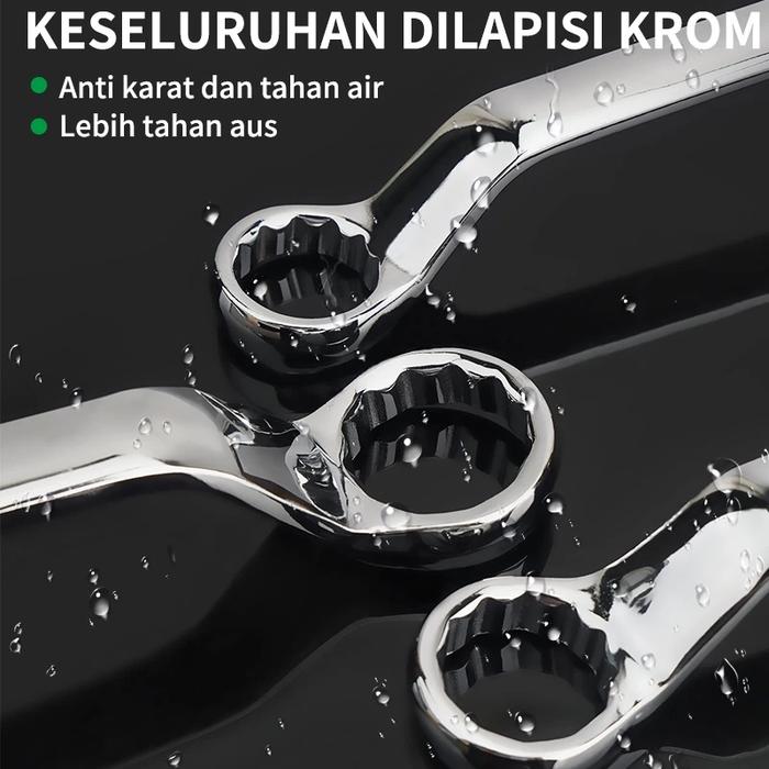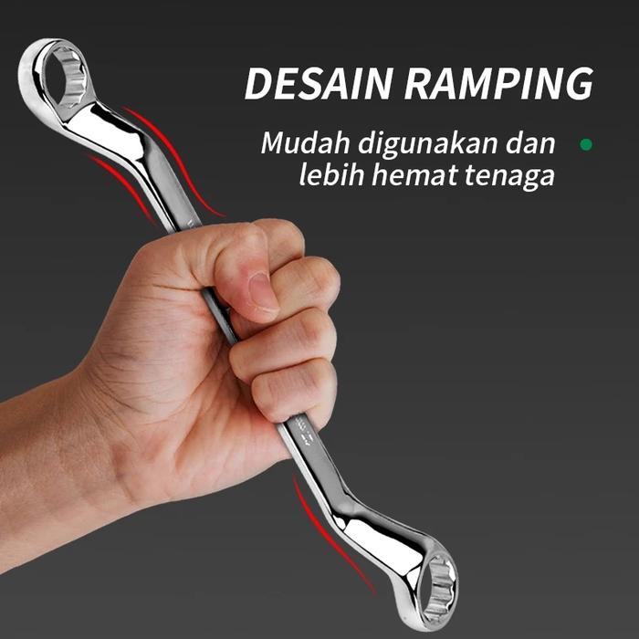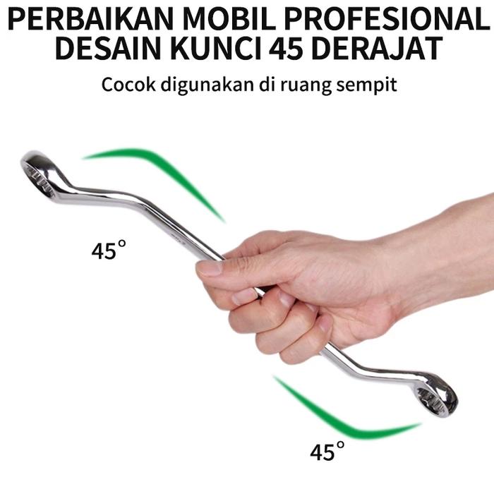 | Offset 45° Dual-End | Memberikan jarak bebas maksimal untuk mengakses mur/baut di area sempit seperti ruang mesin, panel industri, dan komponen yang sulit dijangkau. |