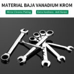 | Material Chrome Vanadium (Cr-V) | Baja paduan berkualitas industrial yang telah melalui proses heat treatment, menjamin kekuatan tinggi dan ketahanan terhadap benturan. |