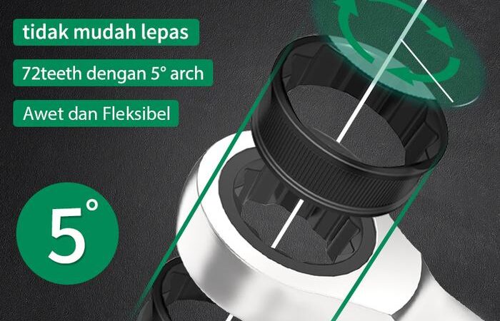 | Mekanisme Ratchet 72 Gigi | Sudut putar hanya 5 derajat, memungkinkan kerja cepat di ruang sempit tanpa perlu melepas dan memasang kembali kunci secara berulang. |