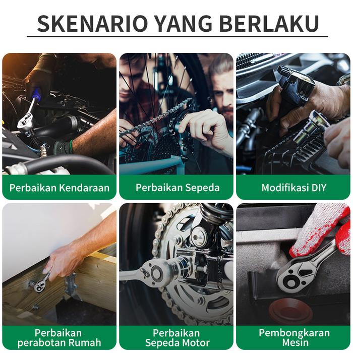 | Ratchet Handle 72 Gigi | 1 | Gagang utama dengan mekanisme halus 72 gigi untuk putaran presisi di ruang sempit. |