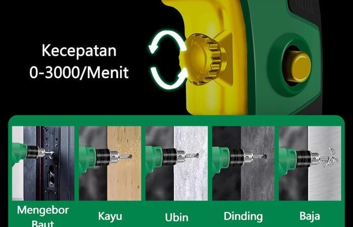 Nikmati kontrol penuh dengan fitur variable speed yang memungkinkan Anda mengatur kecepatan bor dari 0 hingga 3.200 RPM sesuai material. Fitur reversible (putaran bolak-balik) memudahkan proses mengencangkan dan melepas sekrup. Dilengkapi lock button untuk kemudahan operasi terus-menerus dan desain ergonomis yang nyaman digenggam lama.
