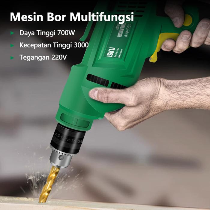 Hadirkan performa bengkel profesional di genggaman Anda! Mesin Bor ISKU 10mm 700W dirancang untuk menaklukkan berbagai material dengan daya tinggi dan ketahanan ekstra. Dilengkapi motor full tembaga, alat ini menjamin kinerja maksimal tanpa cepat panas, sehingga lebih awet untuk penggunaan intensif.