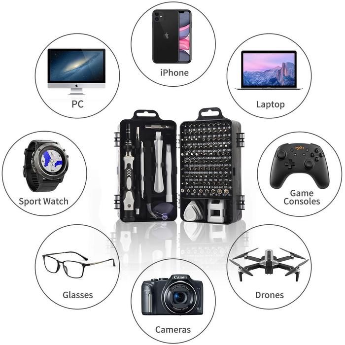 Temukan alat service terlengkap untuk segala kebutuhan reparasi harian Anda. Set obeng ISKU 122 in 1 didesain khusus untuk membongkar dan memperbaiki berbagai perangkat elektronik rumahan dengan presisi tinggi. Mulai dari smartphone, tablet, laptop, konsol game, jam tangan, hingga mainan anak-anak.