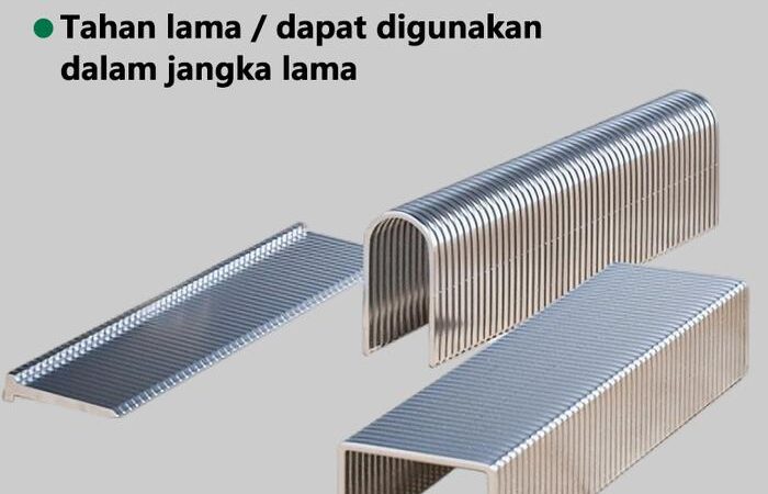 - Carbon Steel: Jenis baja yang padat dan kuat, dikenal karena kekerasan dan daya tahannya, membuat staples tidak mudah bengkok saat digunakan.