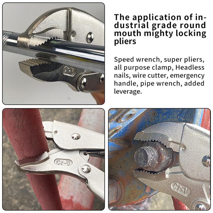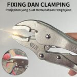 Gigi Melengkung (Curved Jaw)Desain rahang bengkok mencengkeram benda bulat (pipa), segi enam (baut/mur), dan datar dengan kuat – hingga 3x lipat kekuatan tang biasa.