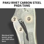 Konstruksi 3 Paku RivetStruktur 3 paku membuat body tang lebih kokoh, stabil, dan tidak mudah goyang saat menjepit benda keras dalam waktu lama.