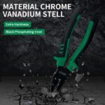 Set alat tang berkualitas tinggi ini dirancang untuk memberikan performa terbaik dan kemudahan dalam berbagai proyek perbaikan. Setiap tang dibuat dari material Carbon Steel 55# yang ditempa dan melalui proses pemanasan (quenching) frekuensi tinggi, menjamin kekuatan dan ketahanan luar biasa. Dengan tingkat kekerasan mencapai 54-62 HRC, daya potongnya sangat kuat untuk memotong kawat tembaga 3 mm, kawat besi 2.8 mm, hingga kawat baja 1.8 mm.