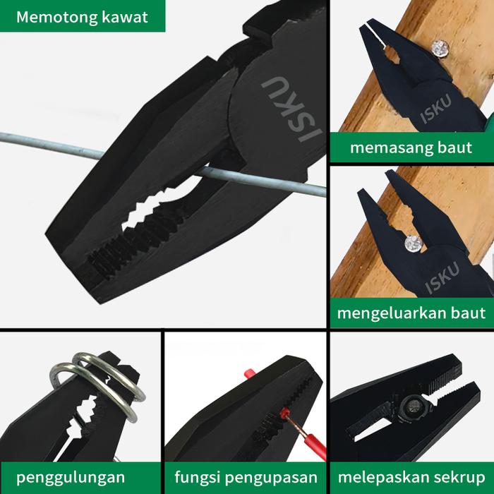 Selain memotong, tang ini serbaguna untuk mengencangkan mur/baut, mencabut paku, dan pekerjaan menjepit lainnya. Desain ergonomis dengan pegangan berlapis PVC/TPR memberikan kenyamanan maksimal, mengurangi lelah, dan mencengkeram dengan kuat tanpa slip. Sangat cocok untuk kebutuhan rumah tangga, bengkel, dan berbagai kerajinan tangan. Dapat dengan mudah disimpan di tool bag atau mobil.