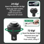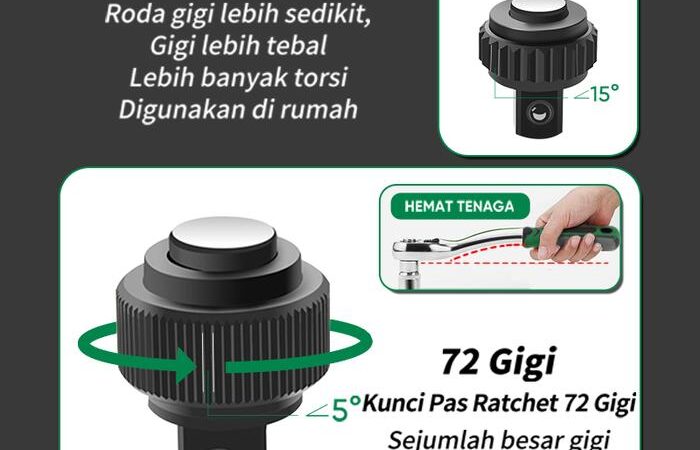 - Kunci Rachet: Jenis kunci yang memiliki mekanisme gerigi yang memungkinkan pemutarannya hanya pada satu arah, memudahkan pekerjaan di ruang terbatas tanpa perlu melepas dan memasang kembali alat.