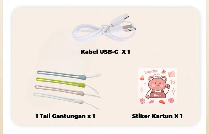 Aksesori GratisStiker Kartun x 1, Tali Gantungan x 1, Kabel USB-C Pengisian x 1