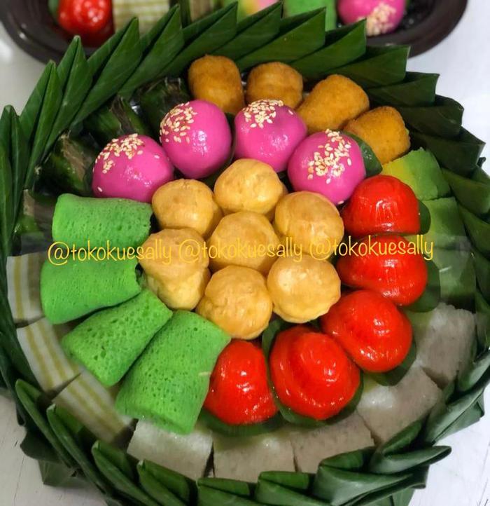 - Kue Nampan/Tampah: Kue tradisional yang disajikan di atas tampah (nampan anyaman bambu) sebagai simbol kebersamaan.