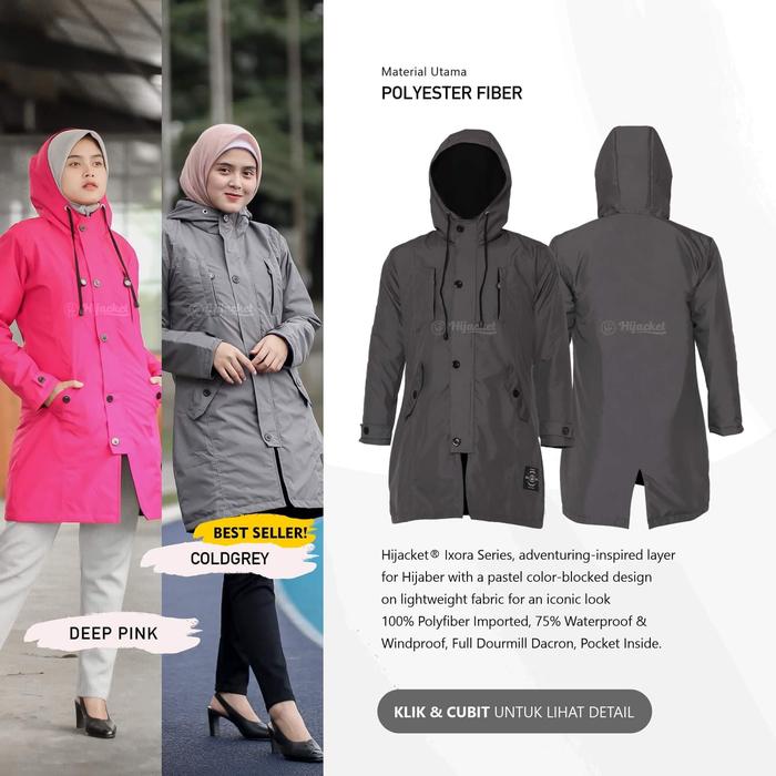 Jaket parasut panjang yang dirancang khusus untuk wanita muslimah modern. Hijacket Ixora menawarkan kombinasi sempurna antara gaya, fungsi, dan nilai-nilai keislaman dengan desain yang menutup aurat. Terbuat dari bahan parasut polyfiber berkualitas tinggi yang memiliki kemampuan 75% waterproof dan windproof, membuatnya sangat ideal untuk melindungi Anda dari hujan rintik-rintik dan angin kencang. Cocok untuk berbagai kegiatan outdoor seperti mendaki gunung, berkendara motor, atau sekadar menjadi pelengkap style sehari-hari.