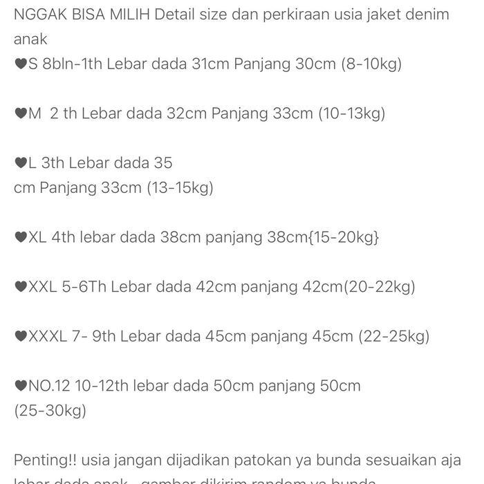 Pastikan ukuran sesuai dengan lebar dada si kecil untuk kenyamanan maksimal. Gambar yang dikirimkan akan dipilih secara acak (random).