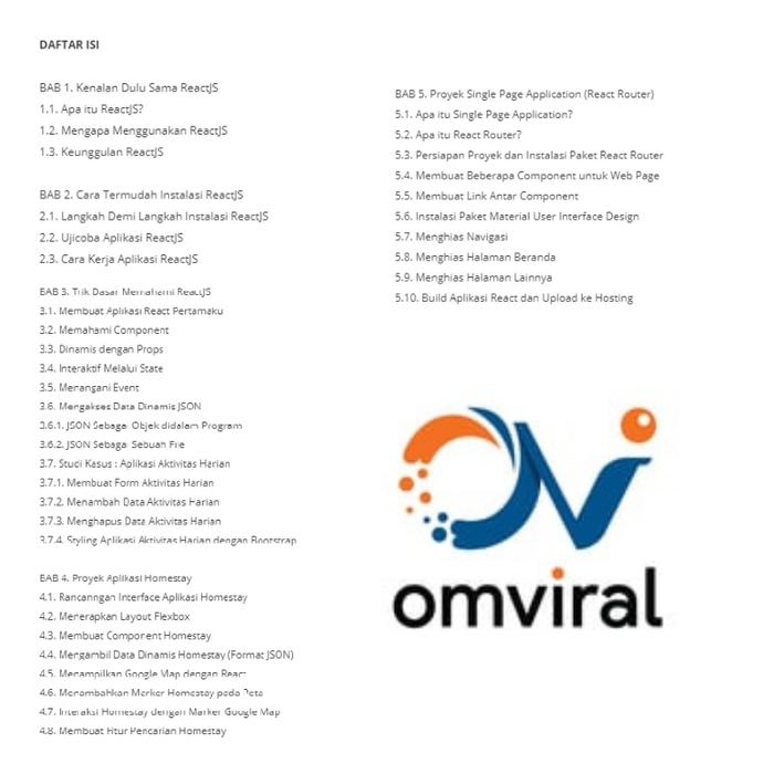 Buku ini adalah panduan komprehensif untuk menguasai ReactJS, library JavaScript terpopuler dari Facebook untuk membangun antarmuka pengguna yang modern, dinamis, dan berkinerja tinggi. Pelajari cara membuat aplikasi web yang cepat, stabil, dan interaktif dengan metode yang terstruktur dan mudah diikuti.