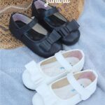 Sepatu ini hadir dalam pilihan warna netral yang mudah dipadukan dengan berbagai outfit: Hitam, Putih, Pink, dan Krem. Aksen pita kotak pada bagian depan menambah kesan manis dan elegan, cocok untuk acara formal maupun sekadar bermain.