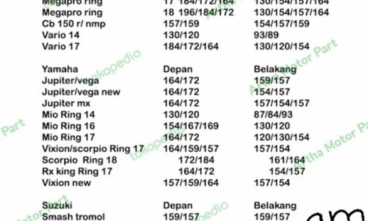 - Ukuran ring depan & belakang (jika berbeda)