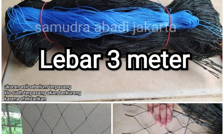 Hal Penting: Perhatikan bahwa ukuran jaring akan menyusut saat dipasang akibat tarikan. Lebar 3 meter dapat berkurang menjadi sekitar 2.5 meter, dan panjang akan menyesuaikan. Oleh karena itu, disarankan untuk membeli panjang lebih dari kebutuhan aktual lahan Anda.