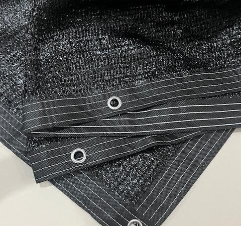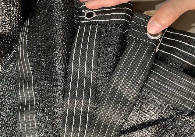 - List dan Mata Ayam: Teknik jahit tepi (list) dan lubang pengikat (mata ayam) yang diperkuat pada setiap sisi paranet. Fungsinya untuk meningkatkan ketahanan material terhadap sobekan dan memudahkan pengikatan pada kerangka.