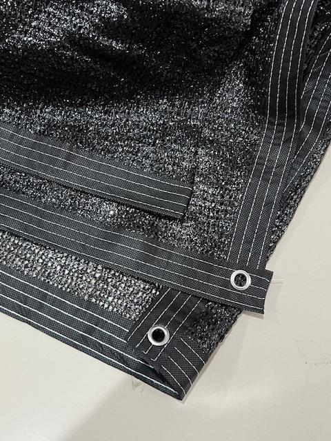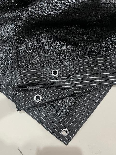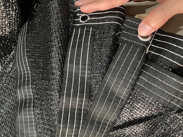 - List dan Mata Ayam: Teknik jahit tepi (list) dan lubang pengikat (mata ayam) yang diperkuat pada setiap sisi paranet. Fungsinya untuk meningkatkan ketahanan material terhadap sobekan dan memudahkan pengikatan pada kerangka.
