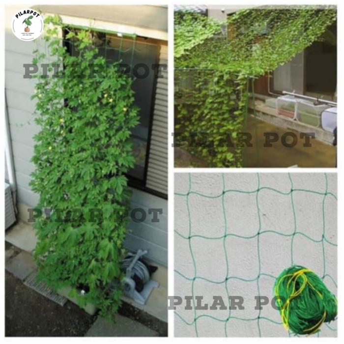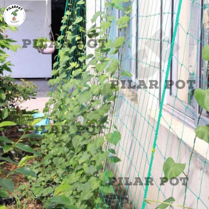 Dukung pertumbuhan optimal tanaman merambat Anda dengan jaring nilon berkualitas tinggi ini. Dirancang khusus dengan mata jaring yang luas (10×10 cm), memberikan dukungan sempurna untuk batang tanaman merambat seperti mentimun, kacang panjang, anggur, markisa, melon, dan bunga morning glory. Konstruksi 27 strand menjamin kekuatan dan daya tahan, mampu menahan beban buah yang berat tanpa putus. Pasang dengan mudah di teralis, pagar, atau pergola untuk menciptakan kebun vertikal yang rapi dan produktif. Cocok untuk kebun rumah, hidroponik, dan pertanian perkotaan.